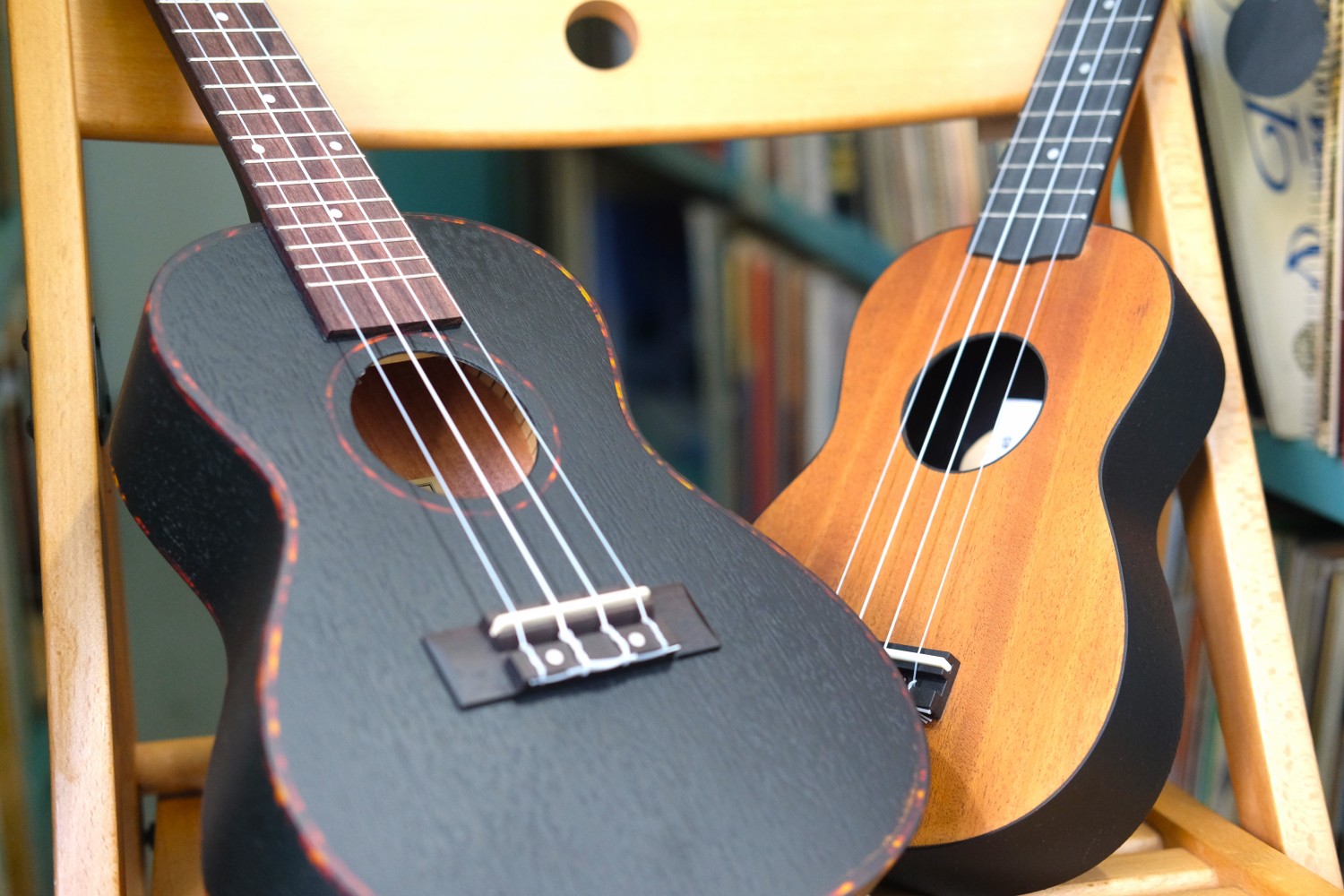 Všem hudebním nadšencům i zvědavcům nabízíme možnost půjčit si domů ukulele. Můžete si vybrat mezi běžným sopránovým ukulele nebo koncertním. Koncertní ukulele díky o něco většímu tělu nabízí nejen hlasitější a plnější tón, ale také větší pohodlí při hře. K dispozici máme také exemplář levorukého ukulele.